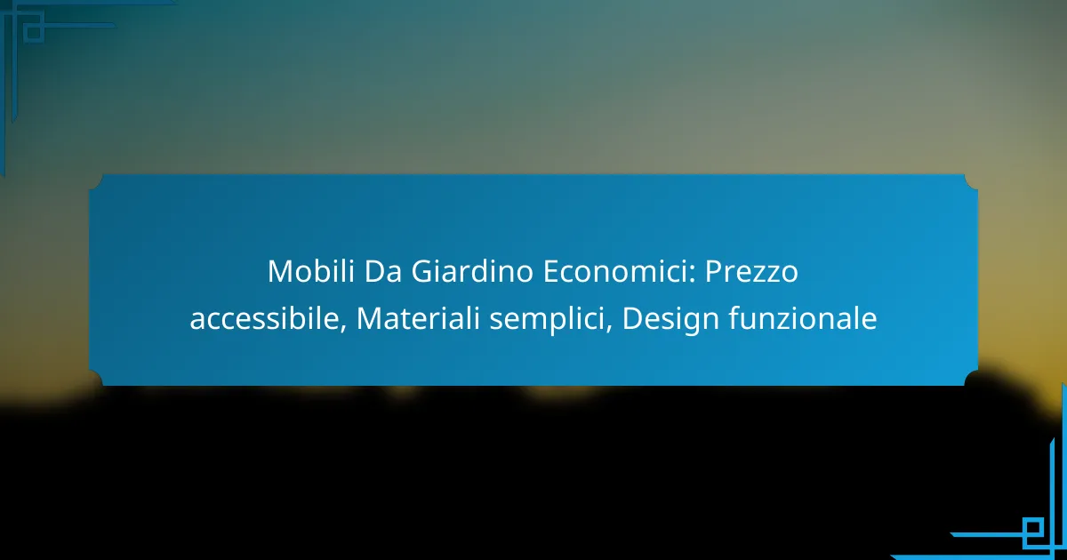 I mobili da giardino economici sono realizzati con materiali semplici e accessibili, come legno, plastica, metallo e compositi. La scelta del materiale influisce su durabilità, costo e design, rendendo importante considerare le proprie esigenze e preferenze.