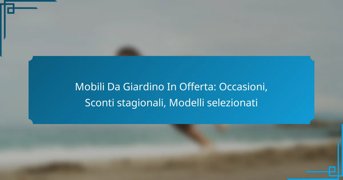 Gli sconti stagionali sui mobili da giardino includono promozioni per il cambio di stagione, come i saldi estivi e invernali. Durante questi eventi, i rivenditori offrono riduzioni di prezzo che possono arrivare fino al 50% su articoli selezionati. Inoltre, ci sono anche offerte speciali per festività come Pasqua e Ferragosto.