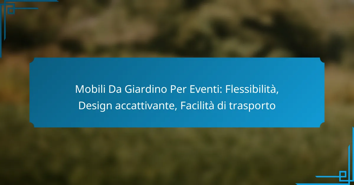 Le alternative ai mobili da giardino per eventi includono opzioni come mobili fissi, arredi temporanei e soluzioni modulari. Queste scelte possono variare in termini di design, flessibilità e facilità di trasporto, influenzando l’atmosfera e la funzionalità dell’evento.
